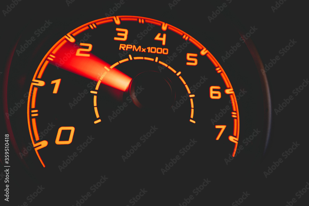 Driver's cockpit ; speedometer on dashboard - colorful light in black, copy space for your abstract design
