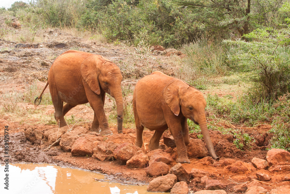 A herd of Elephants running wild in Kenya Safari