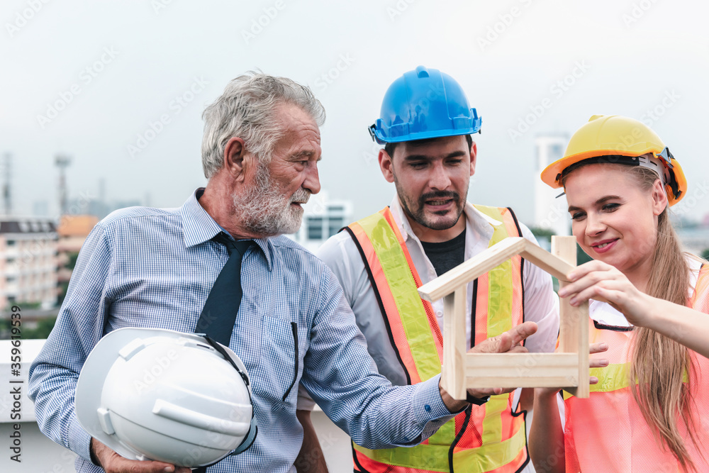 Construction Engineer Team Discussion Planing Work for Residential Estate Project, Engineering Teamwork Meeting Discuss About Building Architecture at Construction Site Together. Business Contractor