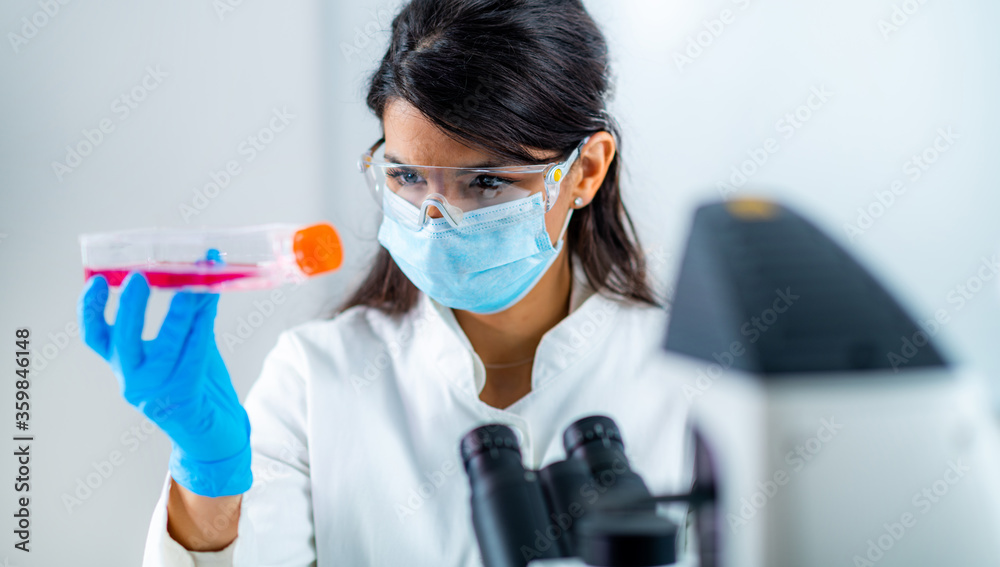Beautiful Female Medicine or Molecular Biology Student in Laboratory