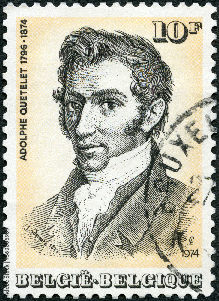 BELGIUM - 1974: shows Lambert Adolphe Jacques Quetelet (1796-1874), statistician, astronomer and Secretary of Royal Academy of Brussels, 1974