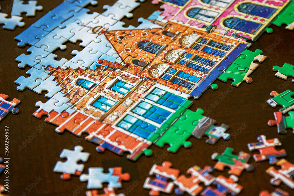 Jigsaw puzzle that is partially done.