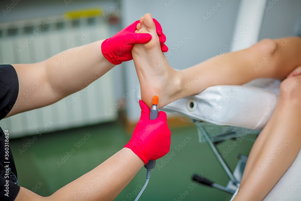 Podiatrist treating toenail fungus. Podology treatment. Close-up.