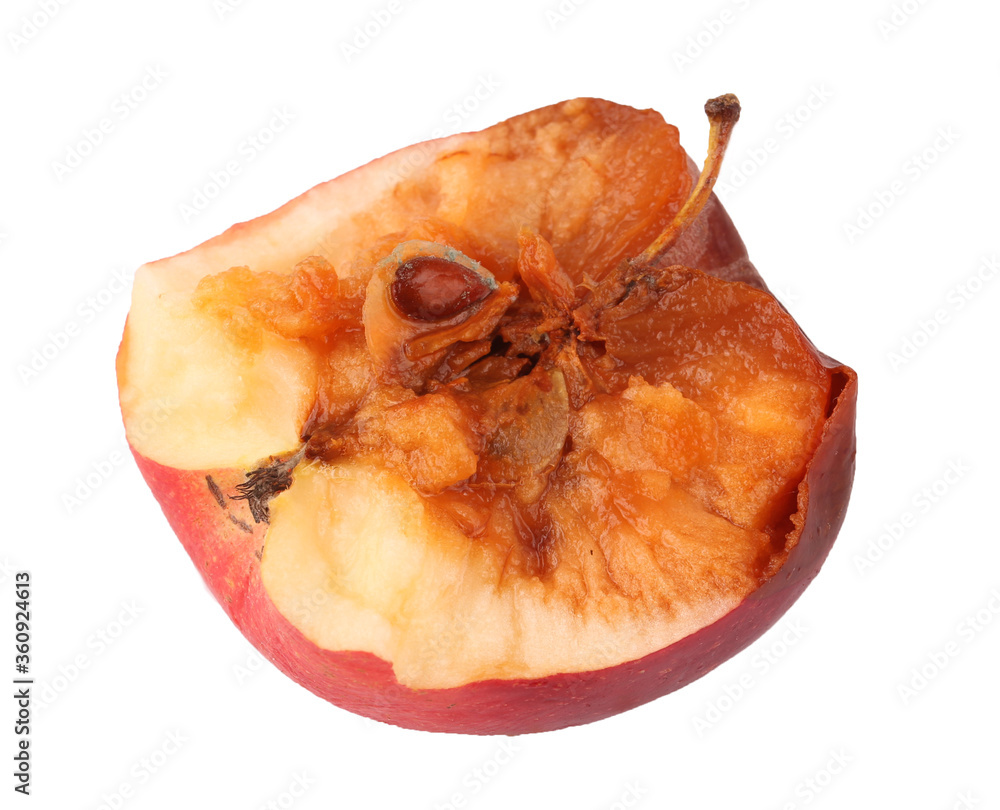 rotten apple on white background