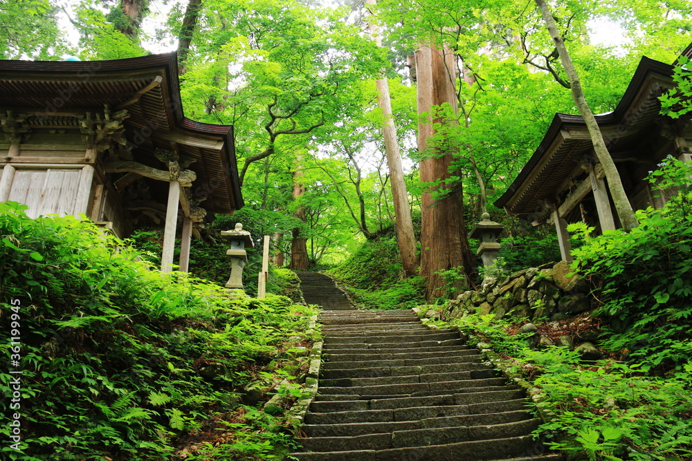 山形 出羽三山の初夏 羽黒山の杉並木の参道