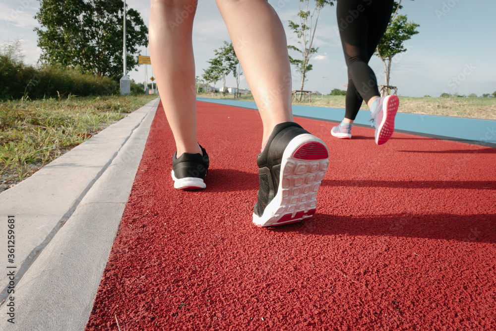 Female Athlete Runner Exercise Jogging in Running Track, Sport Woman in Workout Shoe in Outdoor Running Track. Healthy Lifestyle and Fitness Exercising