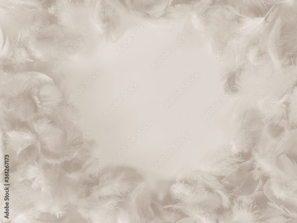 Beautiful abstract gray and white feathers on white background, soft brown feather texture on white pattern background, gray feather background