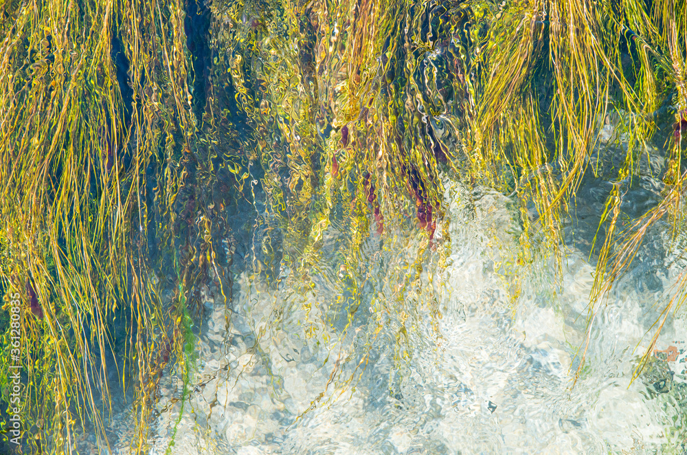 Végétation en mouvement dans l'eau, pour fond.