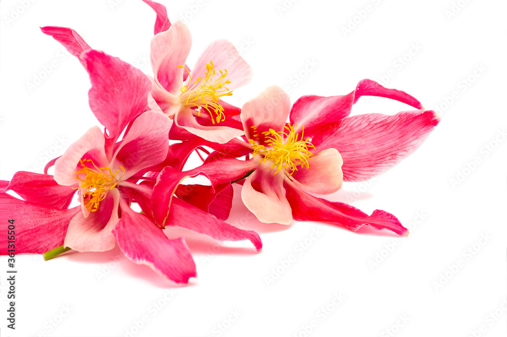 Colorful Inflorescences of Aquilegia Flower Red Star Isolated on a White Background.