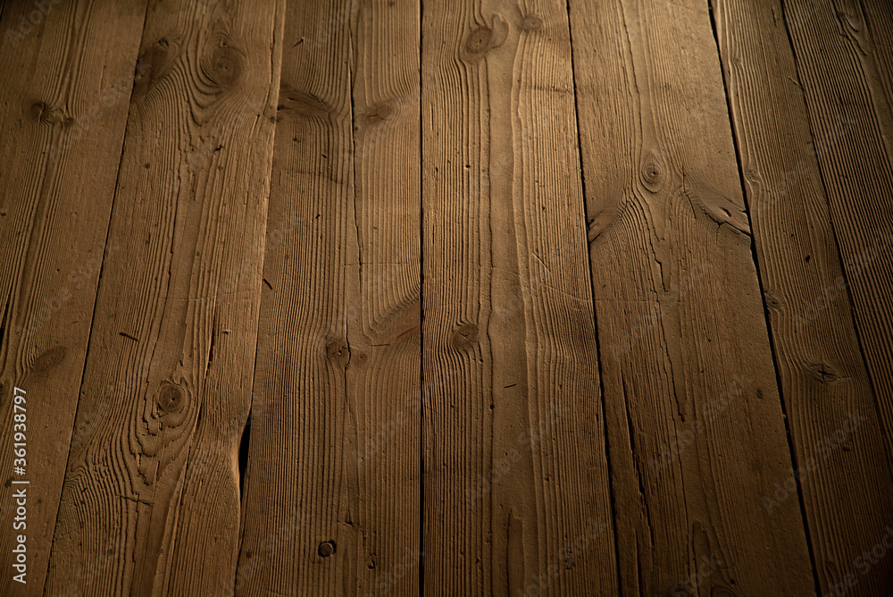 The texture of the wooden floor. Large wooden planks on the floor. View from above. The texture of the boards.