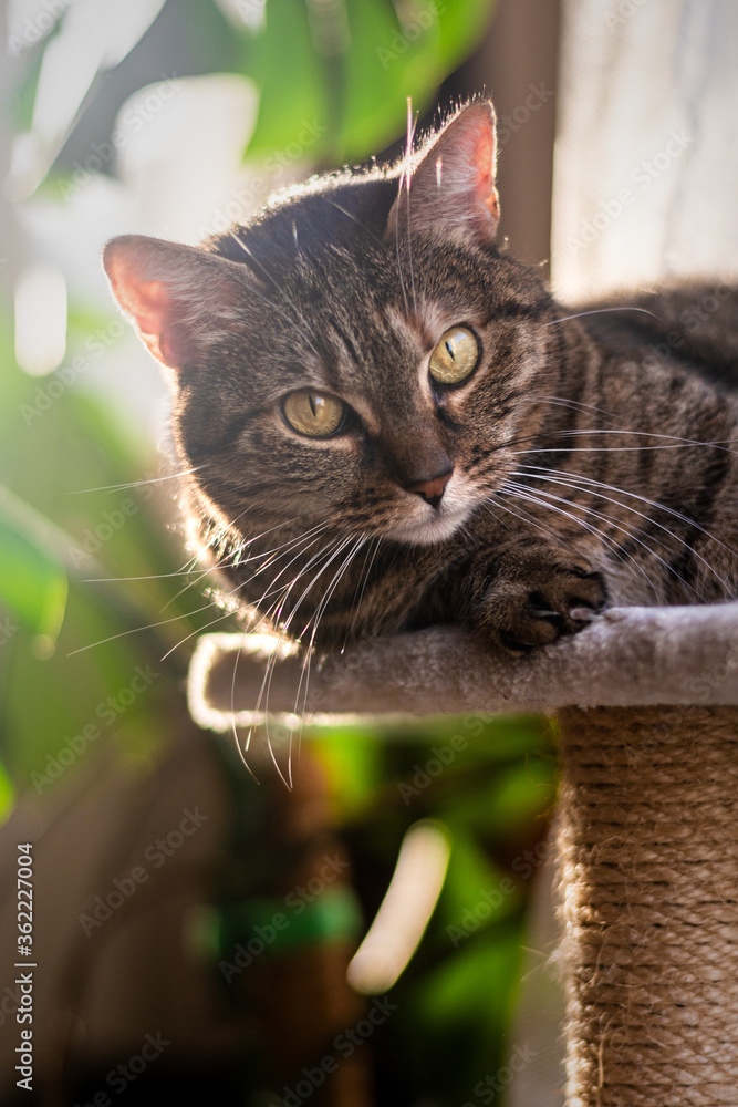 Katze ruht sich auf Ihrem Kratzbaum aus