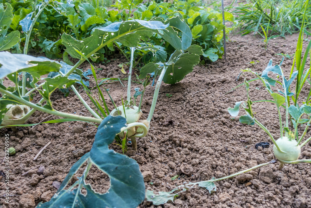 Von Schnecken angefressenes Kohlrabi Gemüse