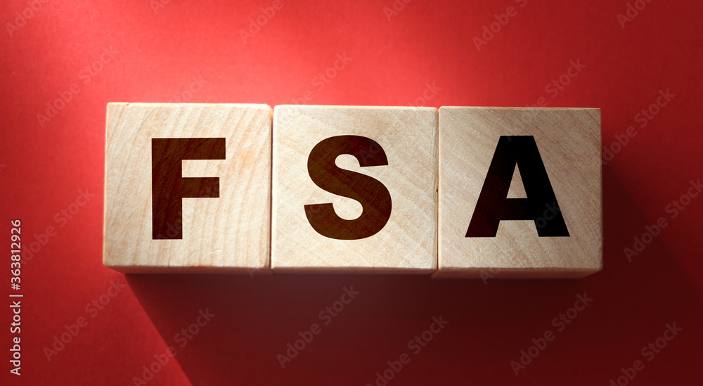 FSA abbreviation on red background. Flexible Spending Account financial concept