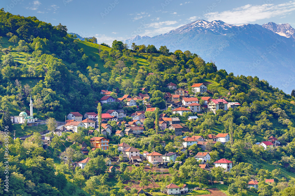 Village houses in the mountains between Konic and Sarajevo, Bosnia and Herzegovina