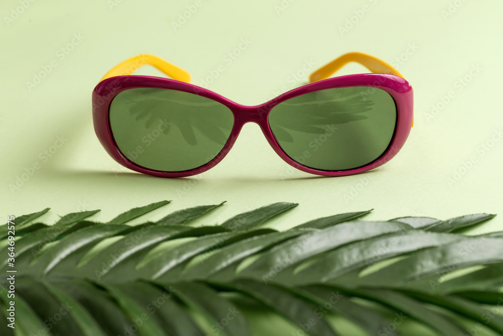 Sunglasses on a green background
