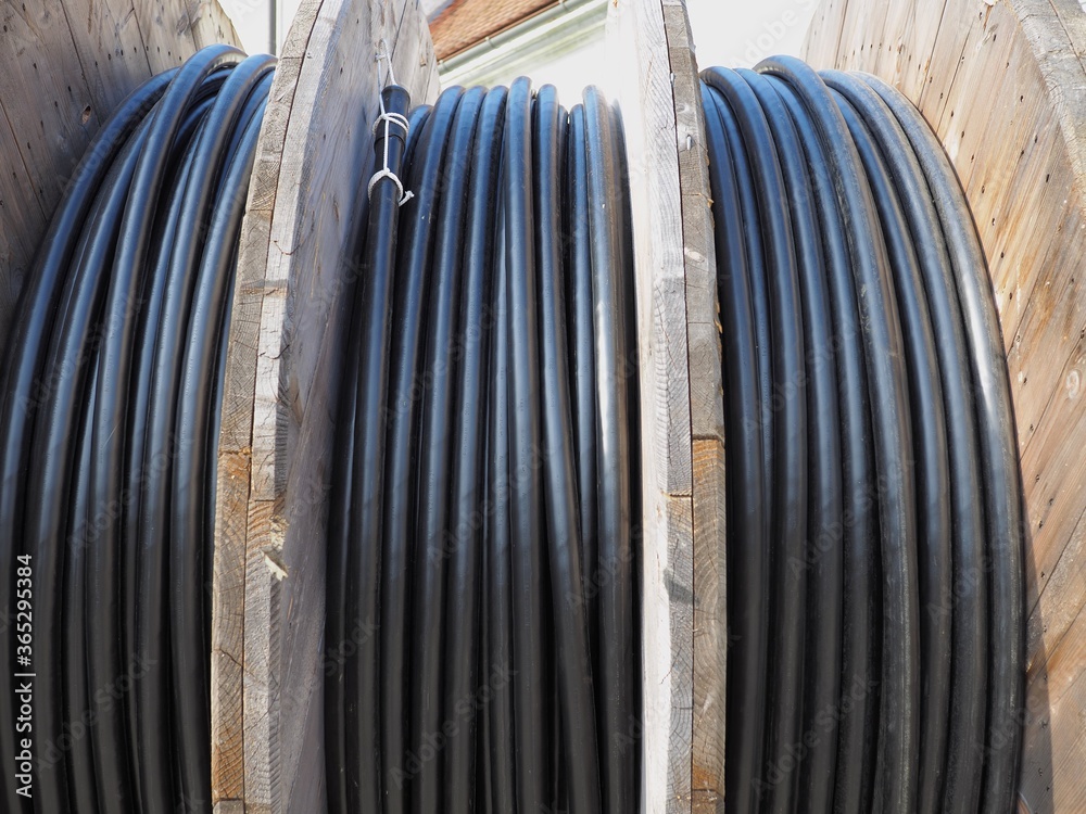 Baustelle - große Kabeltrommel versorgt elektrische Geräte mit Strom