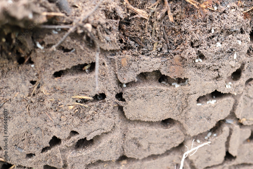 a cross section of the ant hill shows the moves the way ants move with eggs