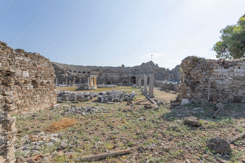 Ruins of ancient city in Side, Turkey