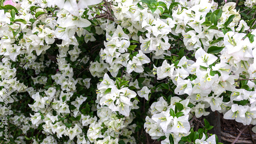 Bougainvillea flowers and bougainvillea plant tree in summer season. This Bougainvillea flowers are pink and purple. Magenta bougainvillea flowers. Postcard or wallpaper texture pattern background.