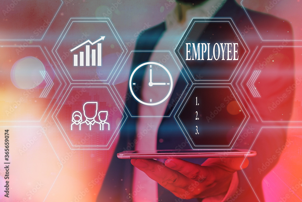 Word writing text Employee. Business photo showcasing an individual working for wages in particular at the nonexecutive level Grids and different set up of the icons latest digital technology concept