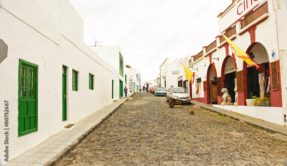 Old flowering peach trees in the garden against the backdrop of green grass and blue sky. Spring landscape.