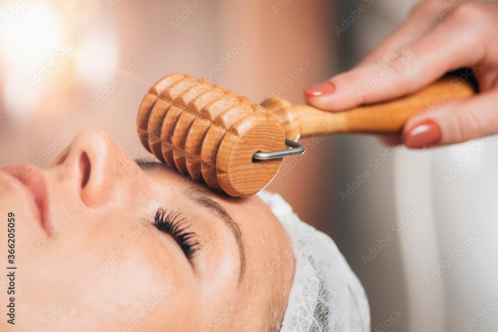 Madero Therapy Forehead Wrinkle Face Massage with Roller Pin Wooden Facial Massager
