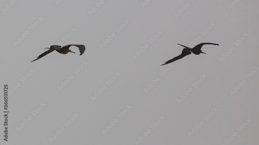 Magnificient Frigate Birds ride the winds of a storm front as it moves inland from the Gulf of Mexico