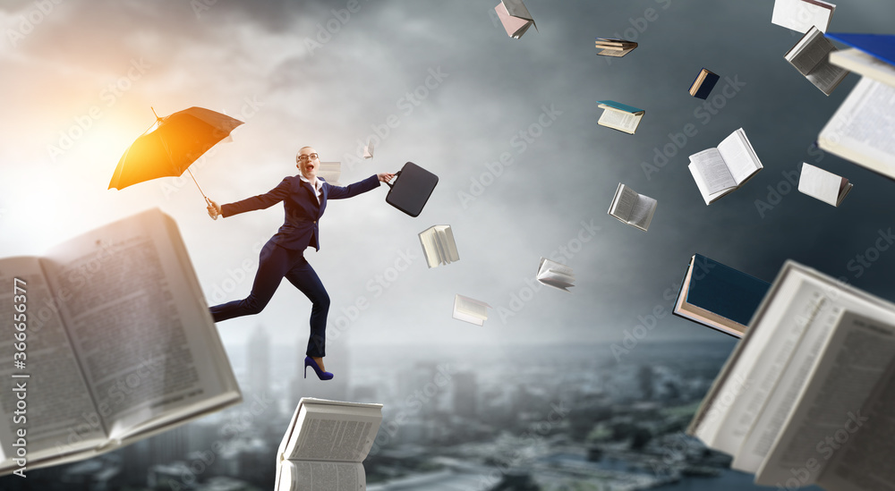 Young businesswoman walking with umbrella