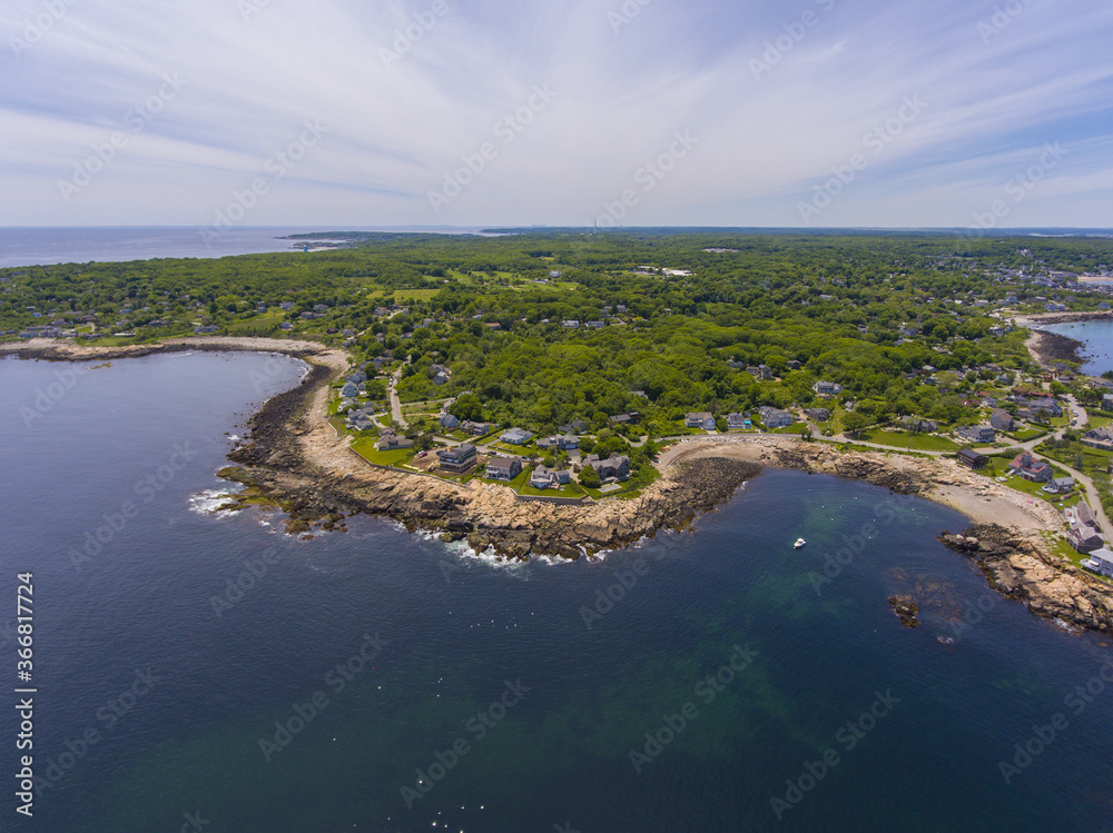 Coastline of Straitsmouth Cove aerial view in town of Rockport, Cape Ann, Massachusetts MA, USA.