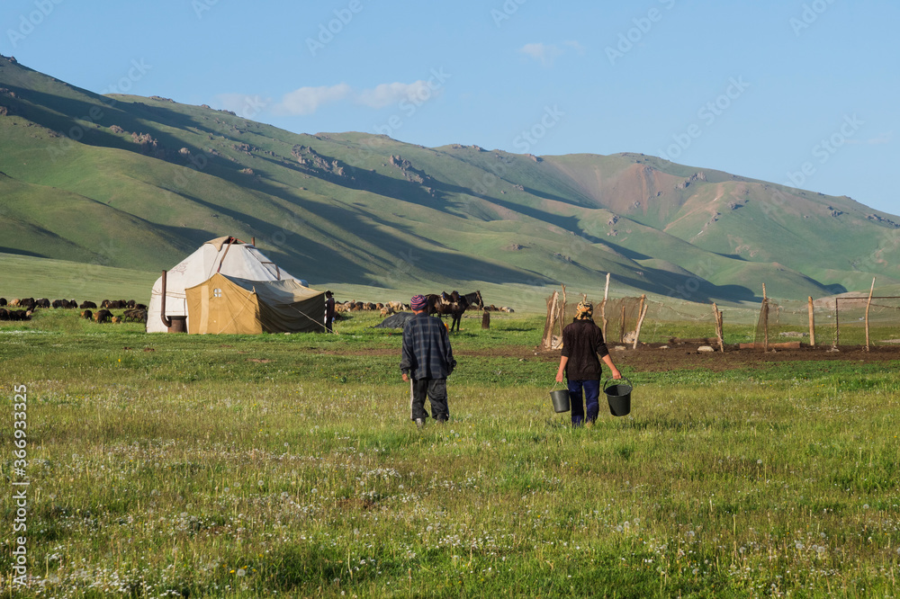 Nomad yurt camp, Song Kol Lake, Naryn province, Kyrgyzstan, Central Asia