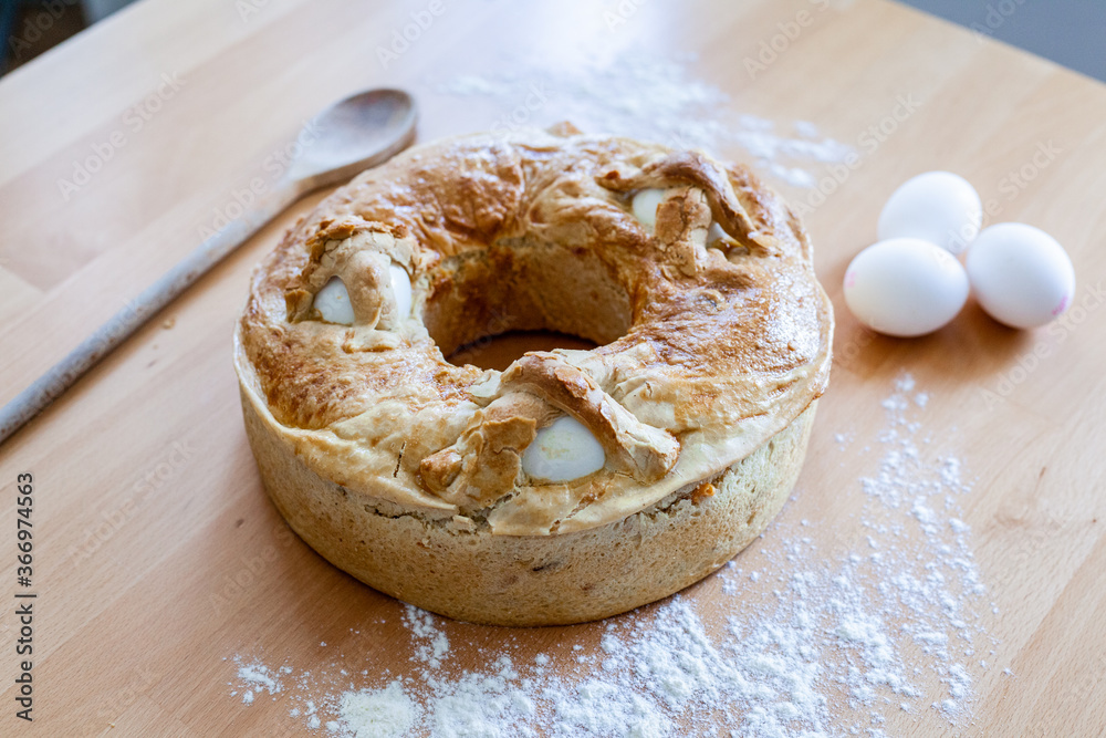Casatiello o tortano napoletano. Rustico tipico della tradizione italiana napoletana.