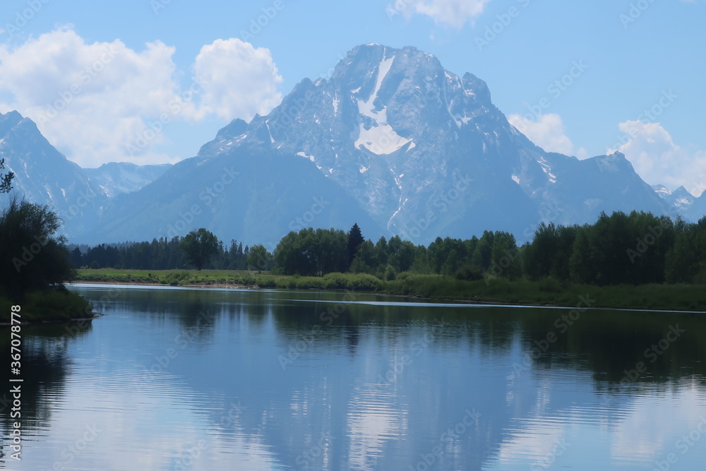 Reflective lake and Mount Moran in the Tetons
