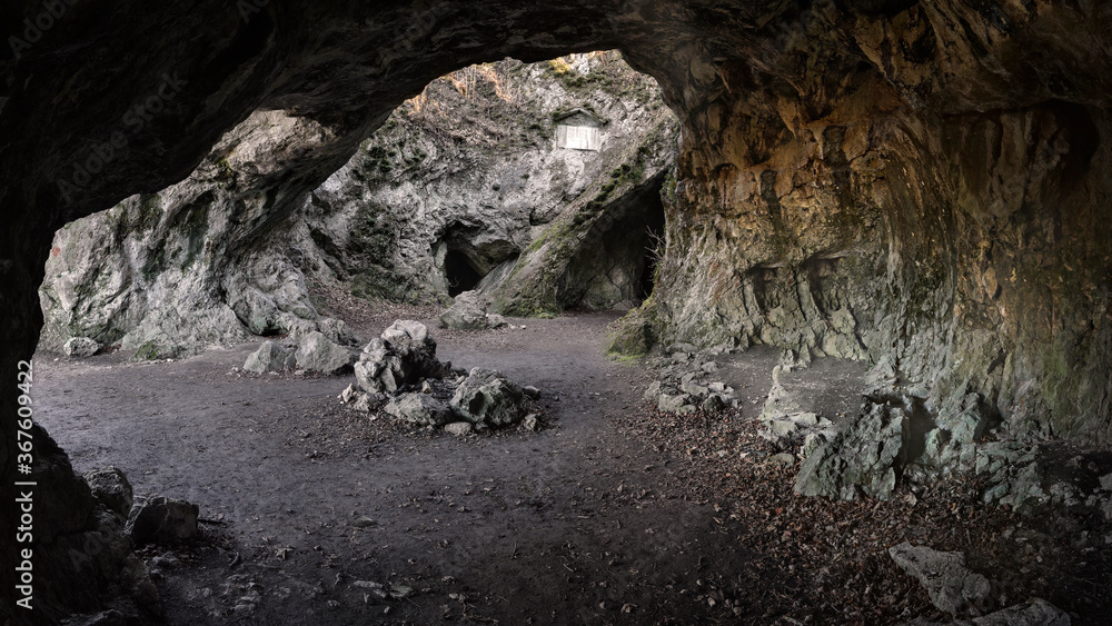 The interior of the famous Sipka cave near Stramberk, where the bone remnants of a Neanderthal child were found, Czech republic