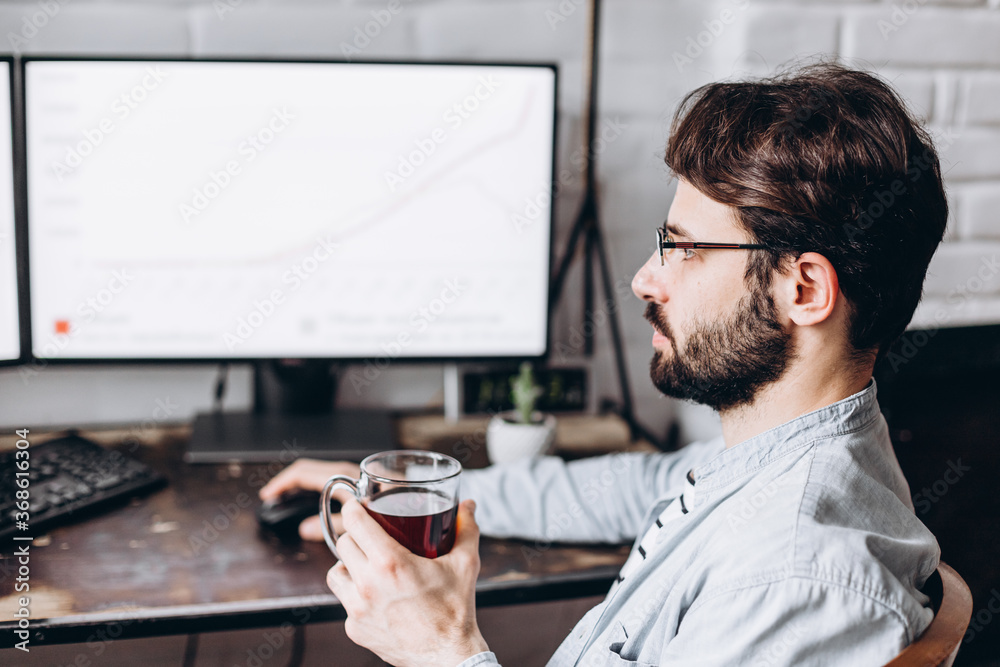 Attractive young man working at a computer