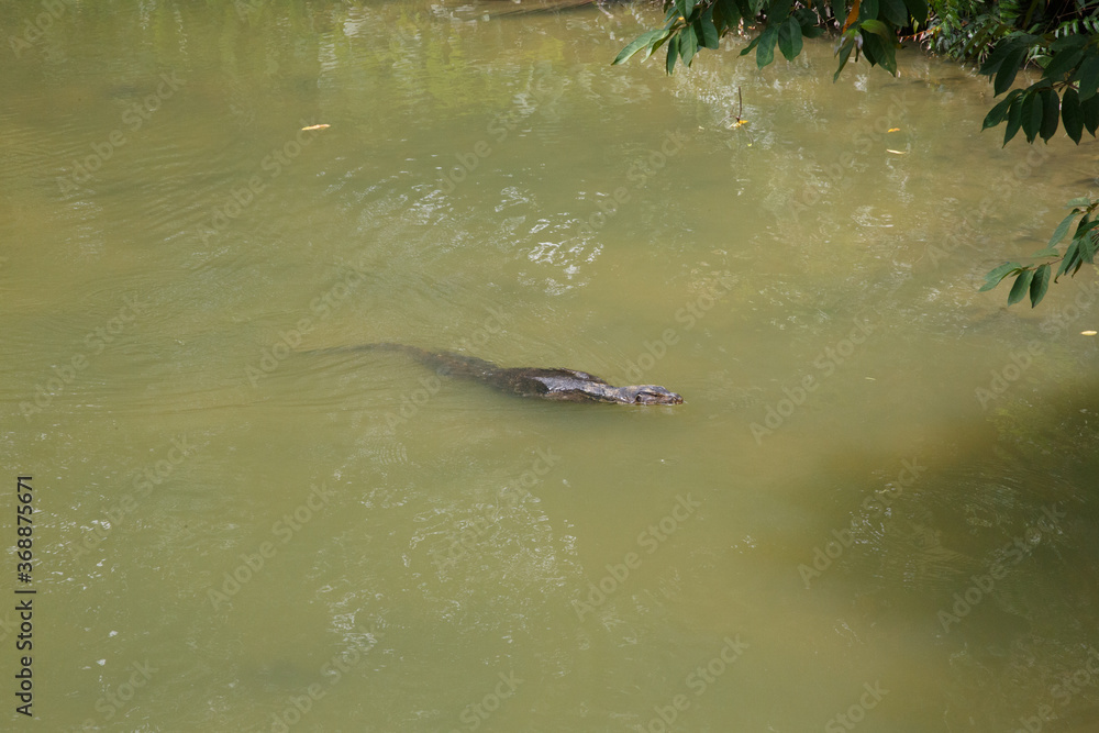 Monitor Lizard swimming in the lake in Singapore Botanic Gardens, Singapore