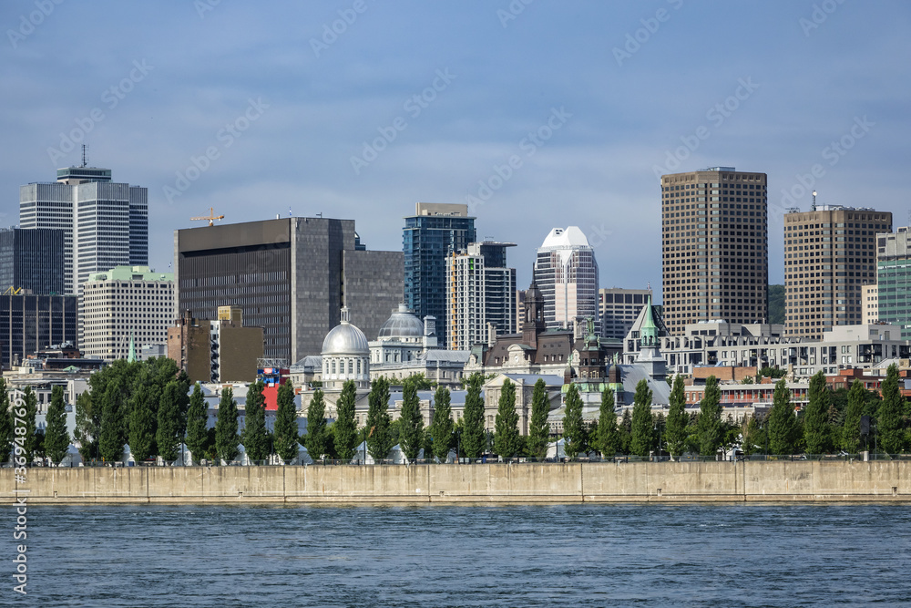 Gorgeous skyline of Montreal city as seen across the St. Lawrence River. Montreal, Quebec, Canada.