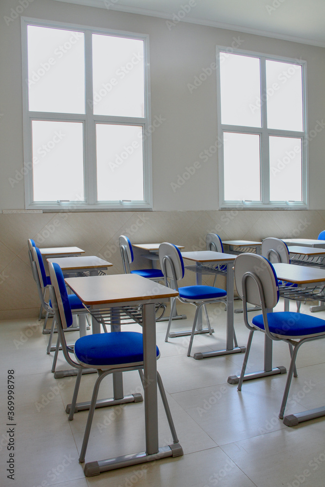 Illuminated empty classroom