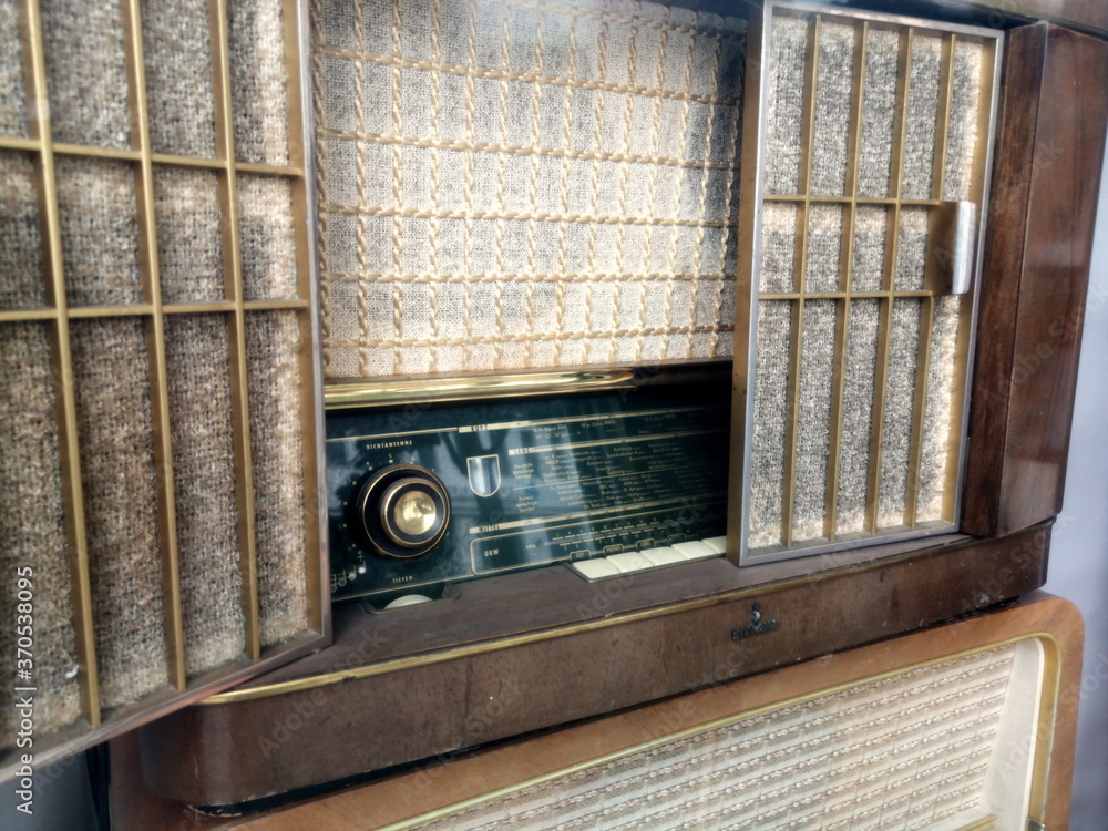 Altes Radio Gerät im Design der Fünfzigerjahre in einem Schaufenster in der Zimmerstraße in der Hauptstadt Berlin