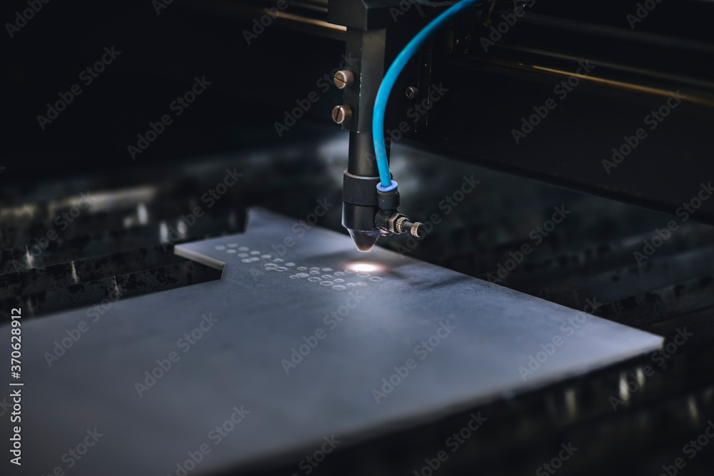 Automated self working laser cutting machine during progress.