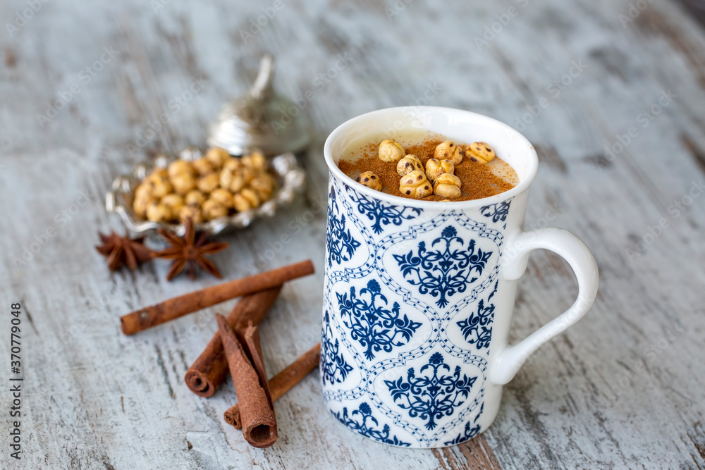 Boza or Bosa, traditional Turkish drink with roasted chickpea