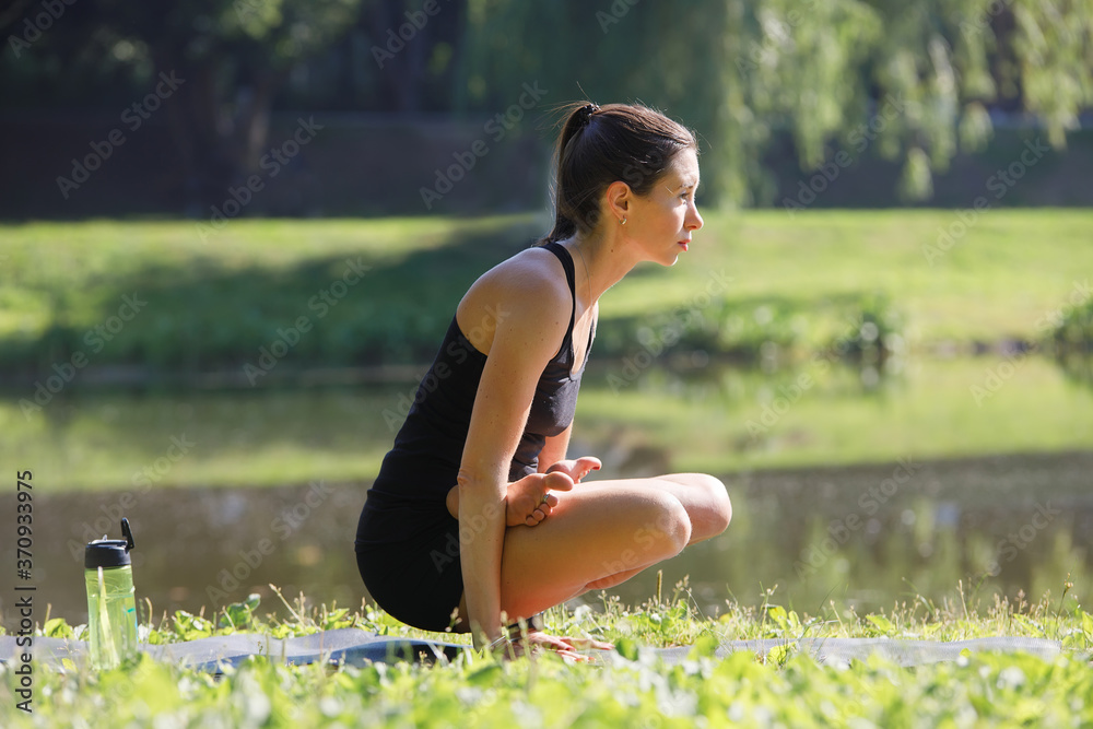 Young attractive woman practicing yoga, doing yoga balance exercise - tolasana indoor.