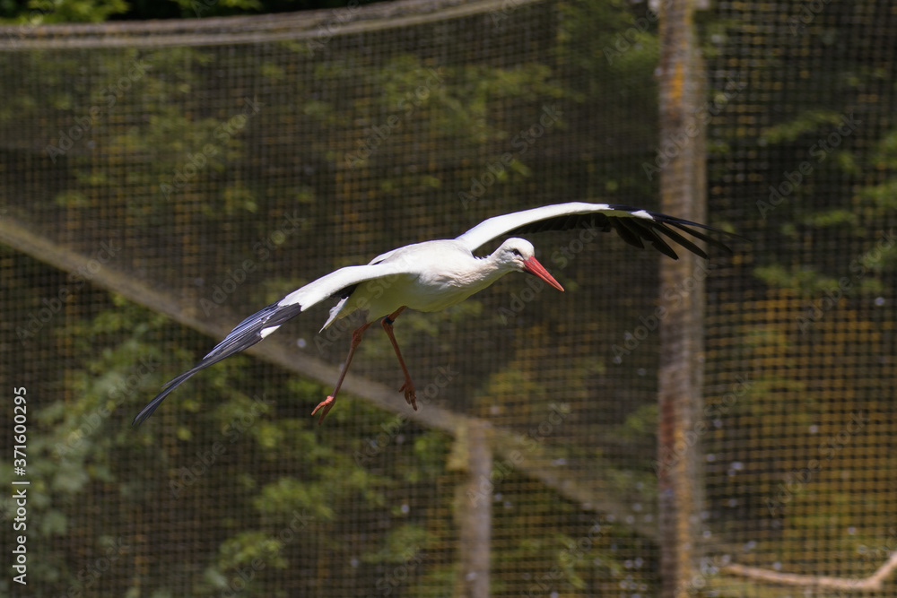 View of an African White Stork in flight