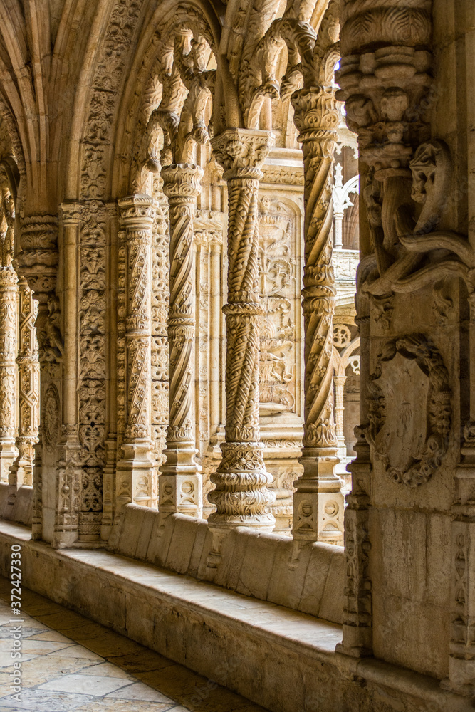 Cloister of the Jeronimos Monastery Cathedral in Lisbon, horizontal