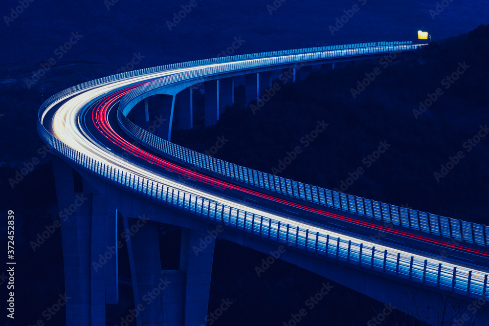 Global transport and logistics connection. Heavy traffic on the modern and futuristic highway.