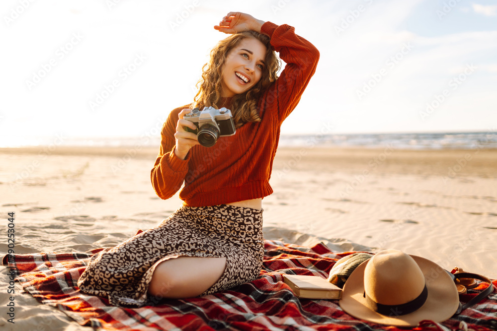 Photo of positive cheerful girl hold glitter ball record boom boos enjoy rejoice retro party wear skirt headwear sunglass isolated over shine bright color background