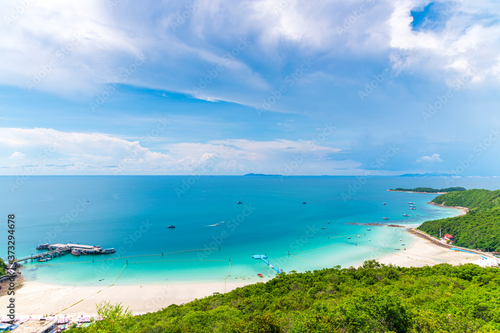 Tropical white sand beach and sea at Tawaen Beach on larn island, Pattaya City, Chonburi, Thailand