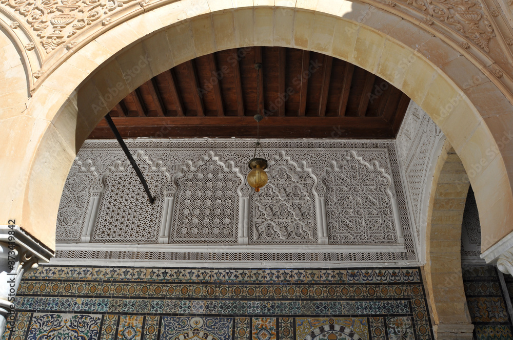 Traditional Arabic style on the walls. Kairuan.Tunis