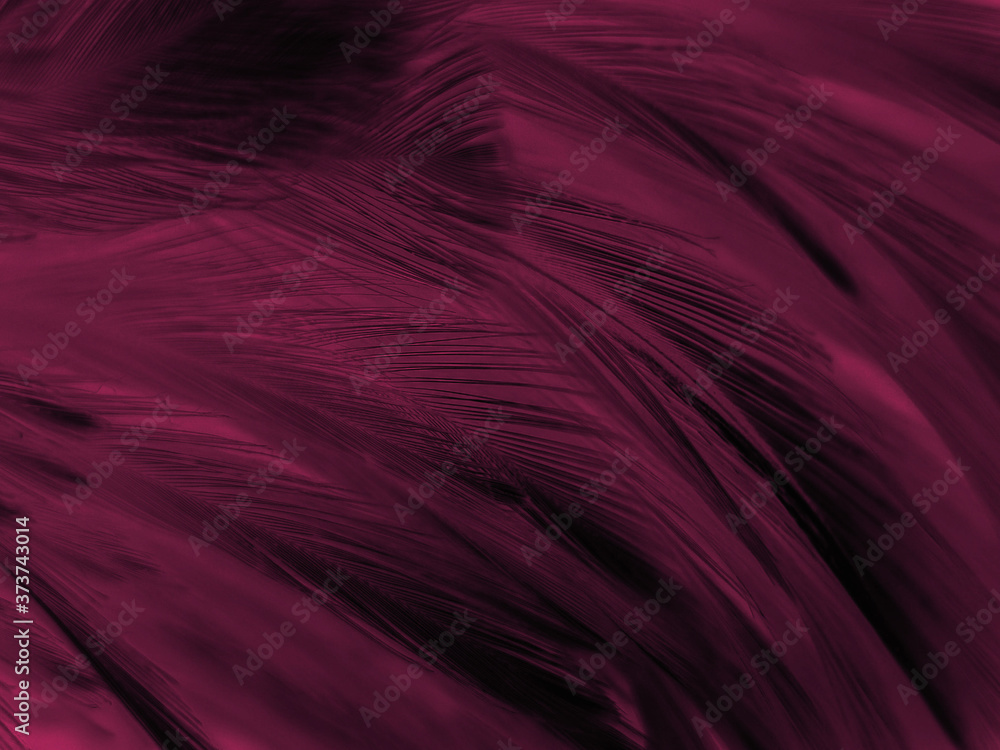 Beautiful abstract pastel pink feathers on dark background, red feather frame texture on red background, dark feather, black banners