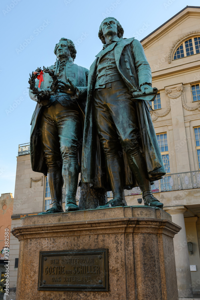 Weimar, Thuringia, Germany: monument of Goethe and Schiller