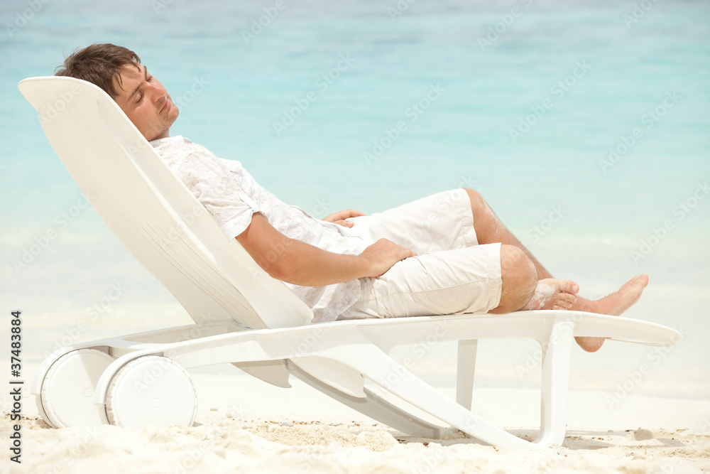 Happy man rest on the beach